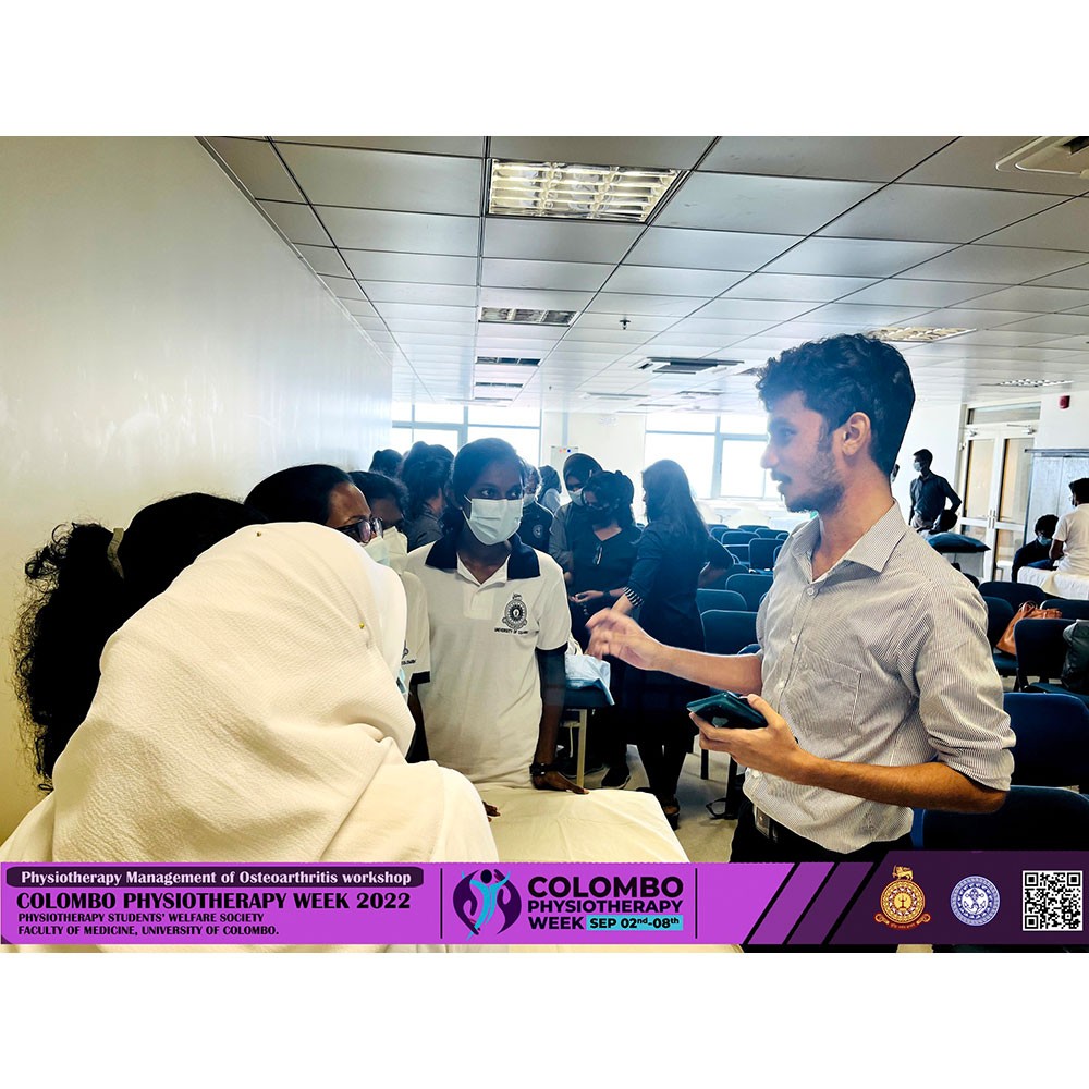 The Physiotherapy Students’ Welfare Society, Faculty of Medicine, University of Colombo organised a “Colombo Physiotherapy Week 2022” to commemorate World PT Day. This consisted of a series of webinars and onsite physiotherapy awareness programmes 2-8 September 2022. All the awareness programmes were mainly focusing on this year’s theme of osteoarthritis.