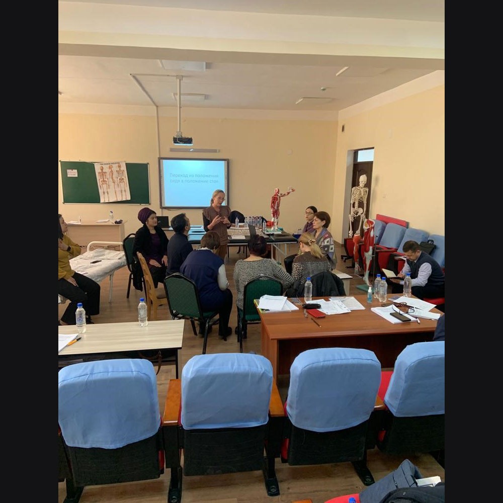 The events, which took place in December 2023, included a specialised clinical training workshop, an interactive session for students, and an online presentation to regional health directors across Tajikistan. These events are part of the Strengthening Rehabilitation Services in Health Systems (SRSH) project, a collaboration between Momentum Wheels for Humanity, World Physiotherapy, the Republican Medical College (RMC), and the WHO office in Tajikistan, funded by USAID. The SRSH project is led by Sidy Dieye, World Physiotherapy's head of programmes and development.