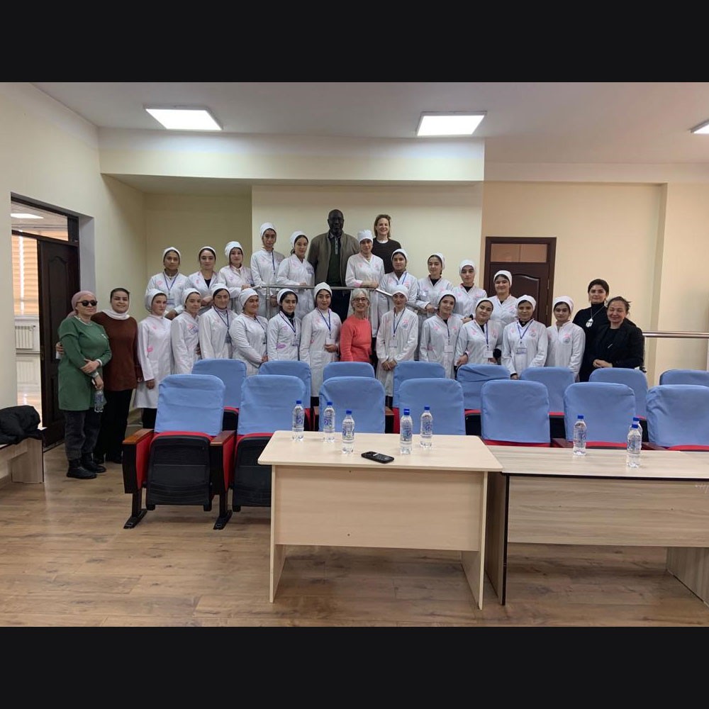 The first cohort of 21 physiotherapy students took part in the interactive session, 16 December 2023, at RMC in Dushanbe. The session was initiated by Shahlo Ashuriyon, RMC director, and included presentations by Ismoil Odilzoda, RMC deputy director, Sidy Dieye, Heather Dawson, Nihad Almasri, and Ann Nicholson. The presentations focused on the opportunities and prospects within the physiotherapy profession.