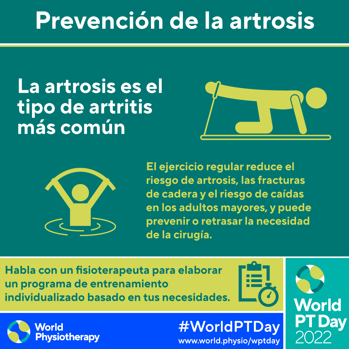 • Download and post one of the ready-made graphics below with messages from the World PT Day 2022 campaign