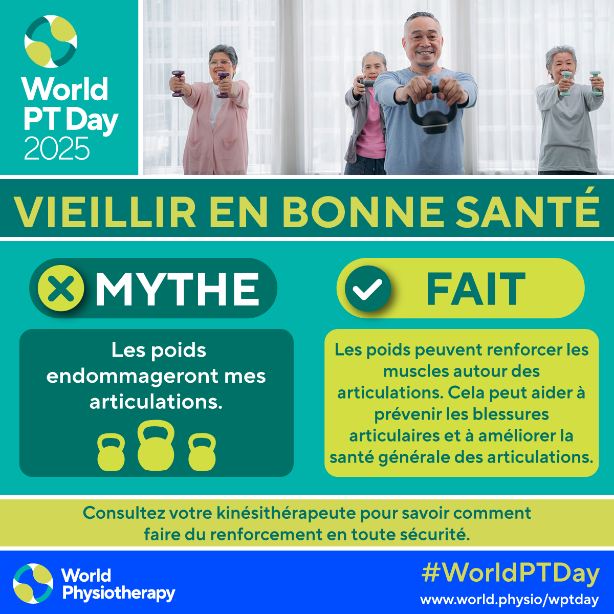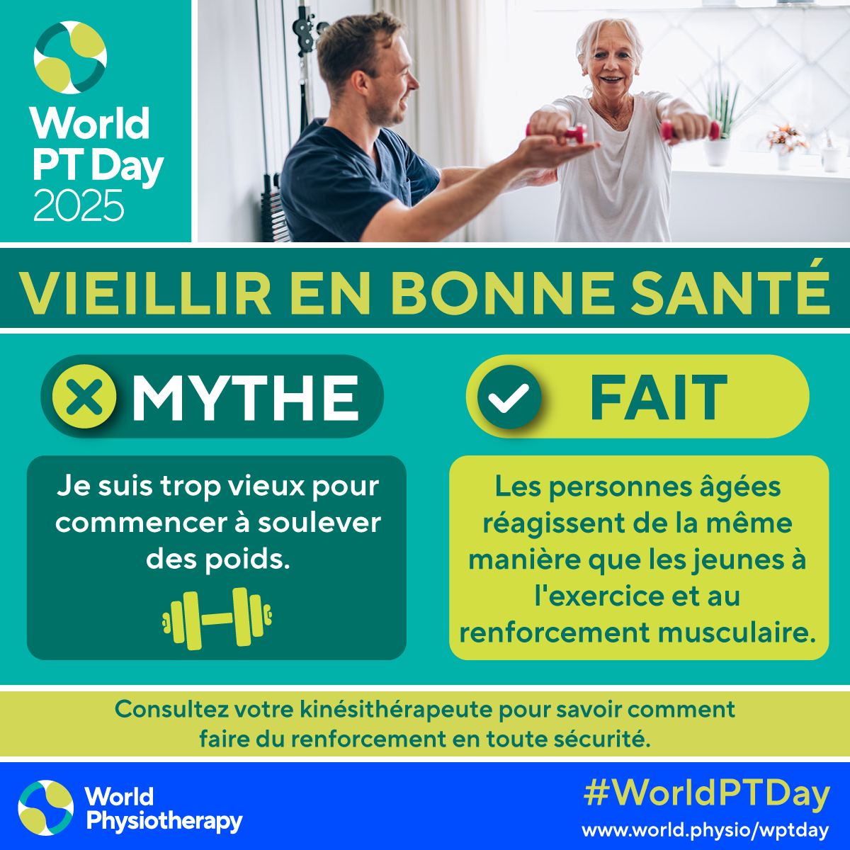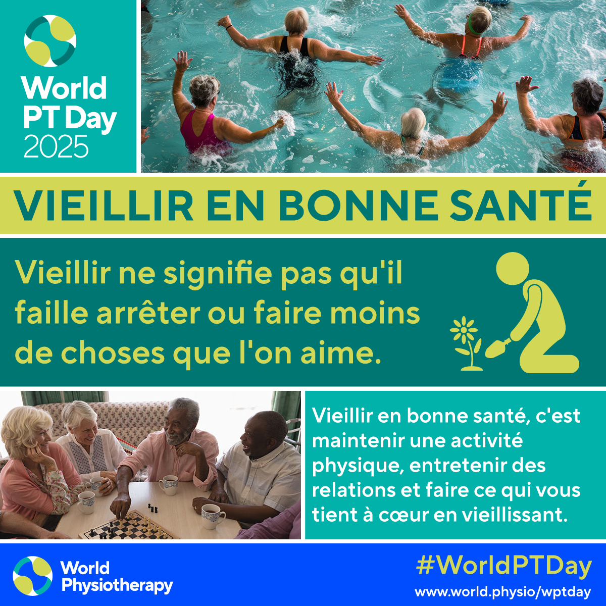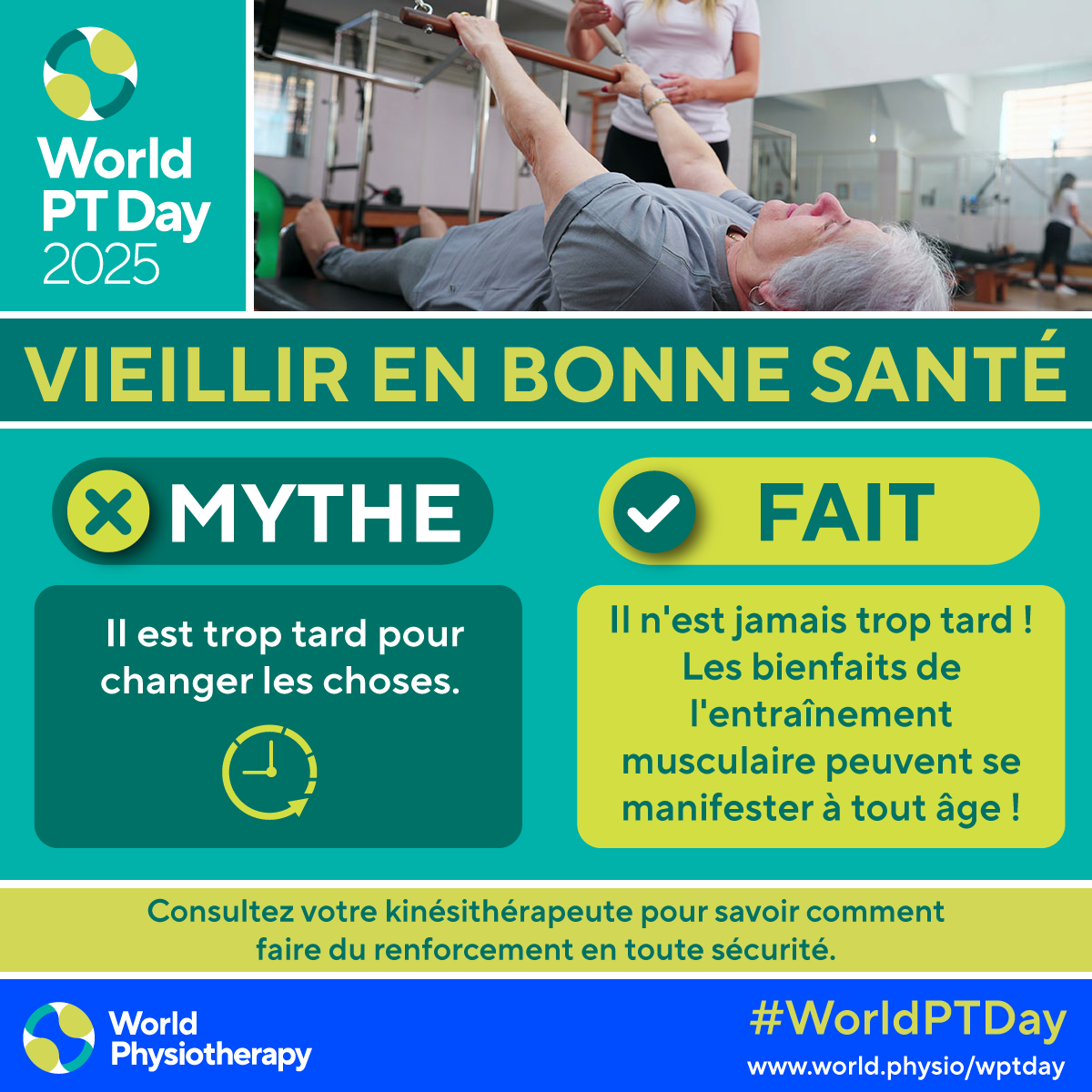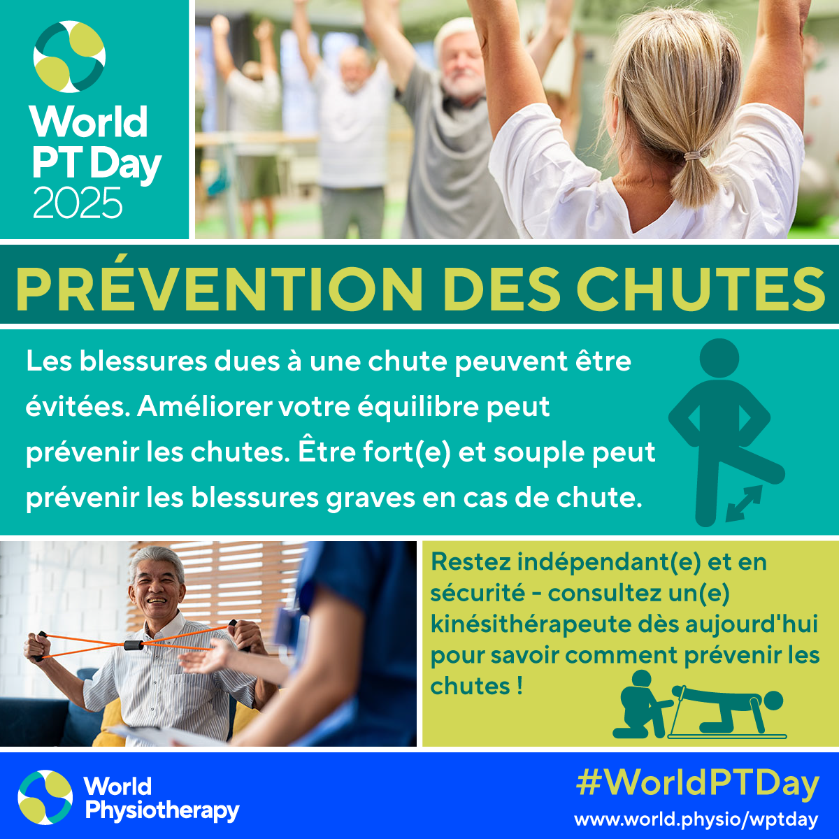 • Download and post one of the ready-made graphics below with messages from the World PT Day 2025 campaign.