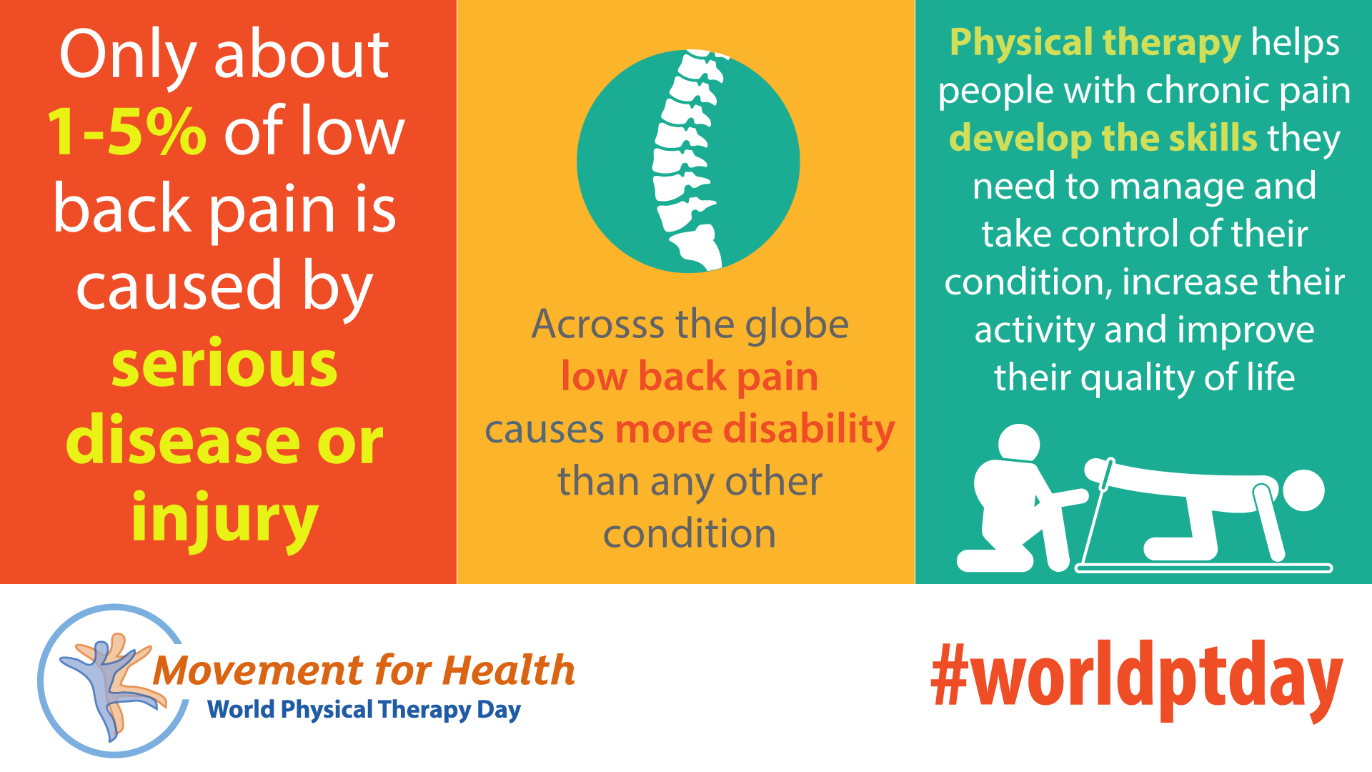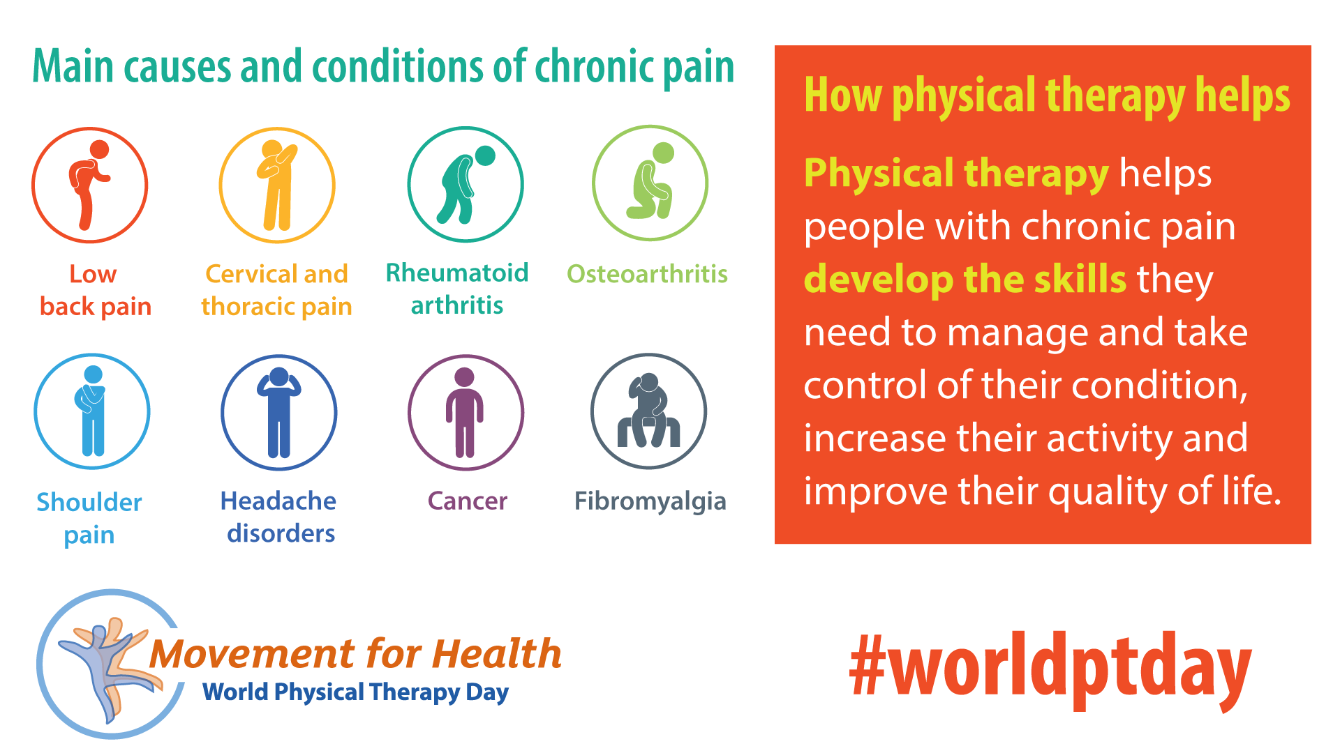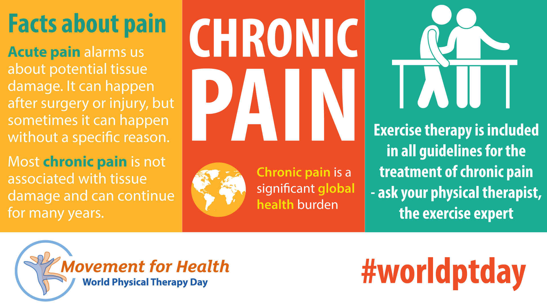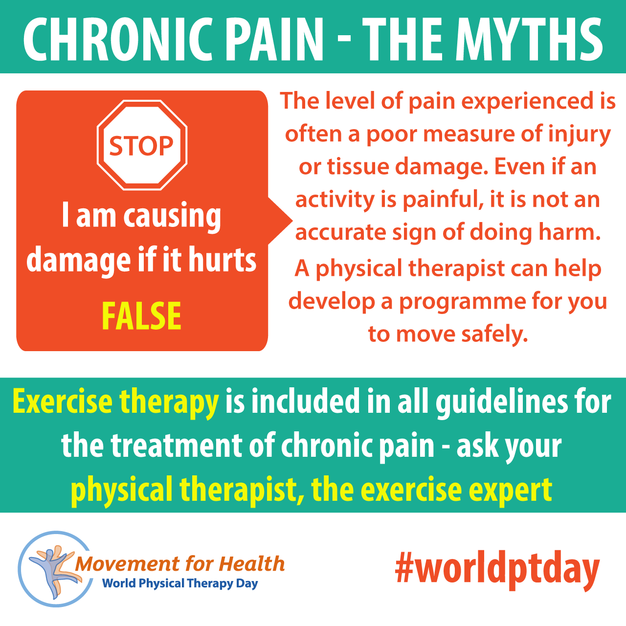 - Download and post one of the ready-made graphics below with messages from the World PT Day 2019 campaign