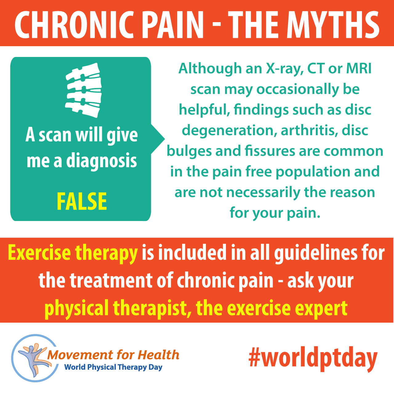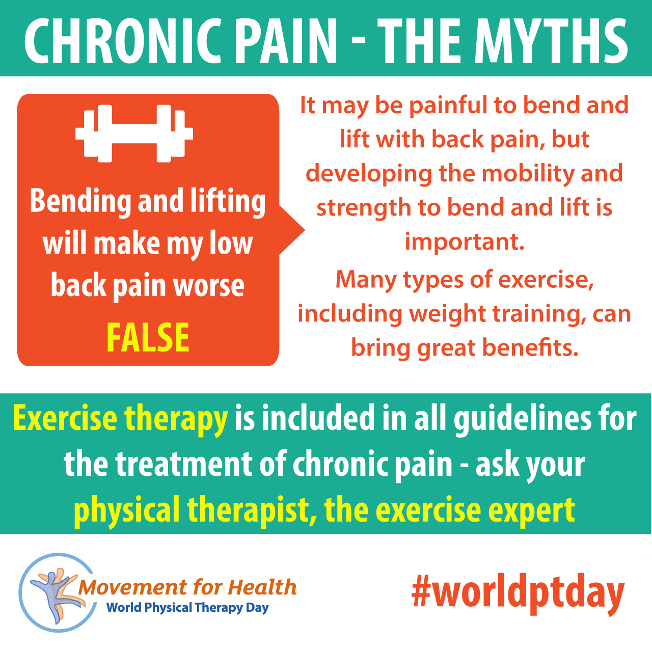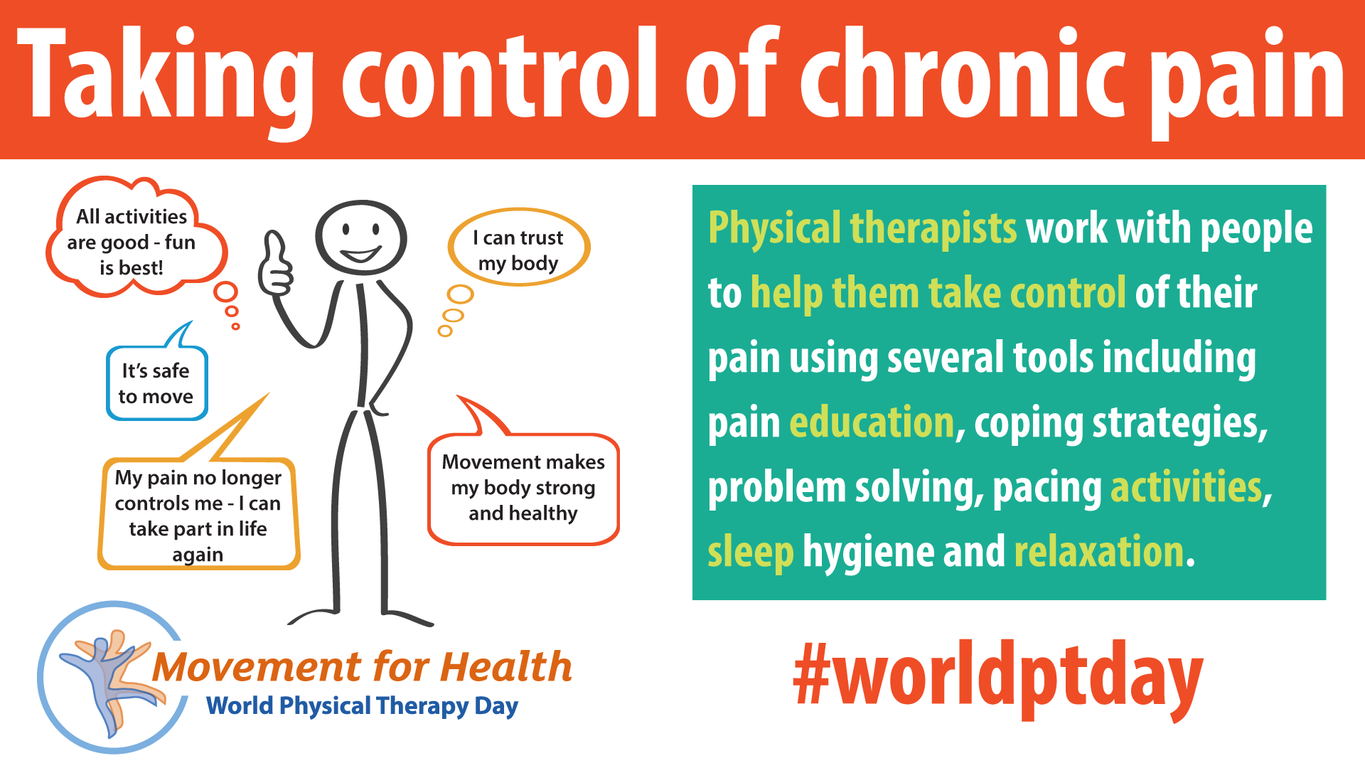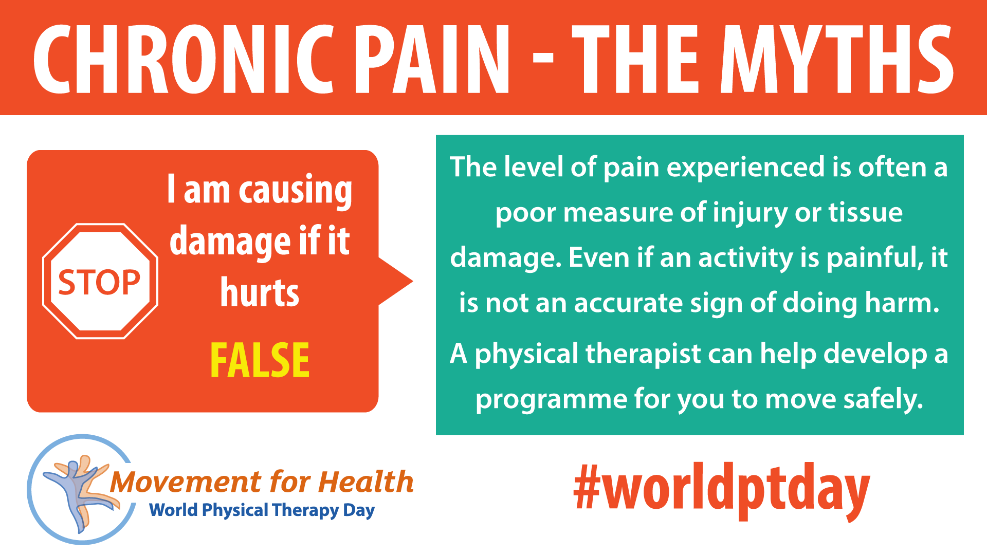 - Download and post one of the ready-made graphics below with messages from the World PT Day 2019 campaign